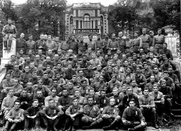 Взвод разведки 338-го полка НКВД. Фото из семейного архива Николая Ивановича Лобахина. Николай Иванович на фронте с первых дней войны, 2 раза был в штрафном батальоне, имел несколько ранений. После войны в составе войск НКВД ликвидировал бандитов в Прибалтике и на Украине.