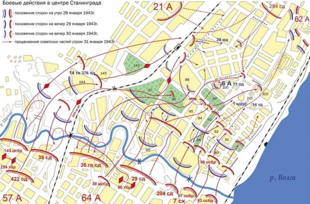 Схема боевых действий в центре Сталинграда в последние дни существования немецкой группировки