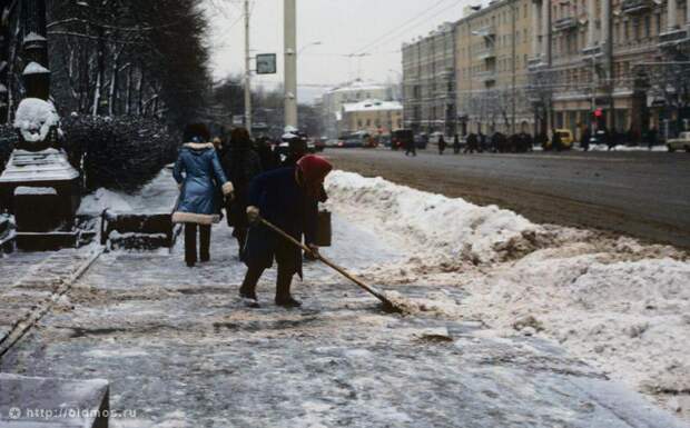 Уборка снега у метро «Парк Культуры». 1982 год.