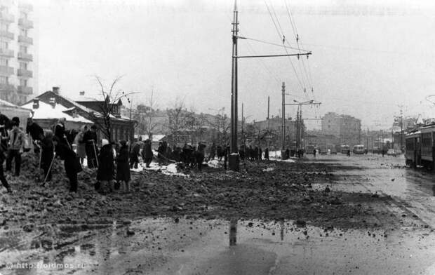 Это субботник в 1964 году. Метро "Преображенская площадь" еще нет, народ ехал домой на трамваях и троллейбусах от м. "Сокольники"