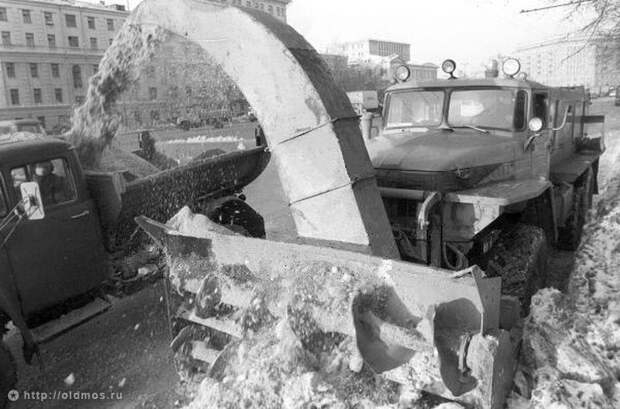 Уборка снега на Зубовской площади. 1982 год.
