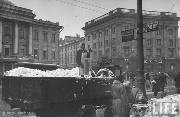 Охотный ряд. Уборка снега. 1947 год.