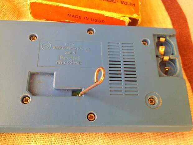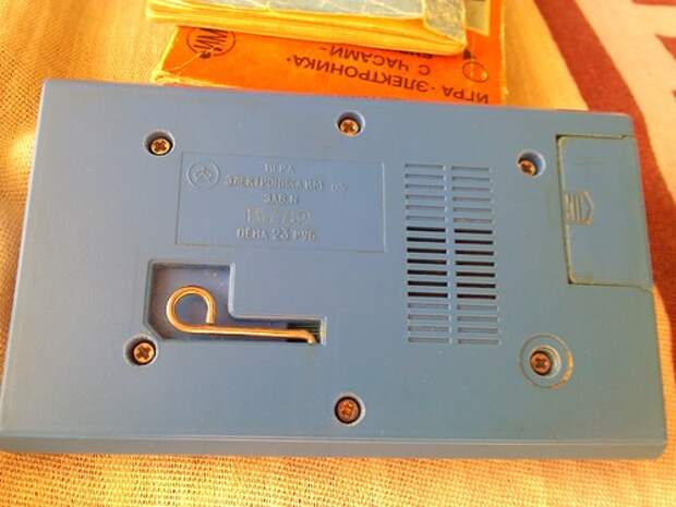 Питалось это чудо от двух элементов СЦ32 (толстенькие) либо СЦ30 (тоненькие). Кстати, игра могла и без батареек работать. Однажды, насмотревшись "Очумелых ручек", я собрал батарею из 2х или 3х баночек с водой с содой, в которые были опущены пятаки и обломки цинкового ведра, соединил это всё и игра в режиме часов преспокойно работала.
