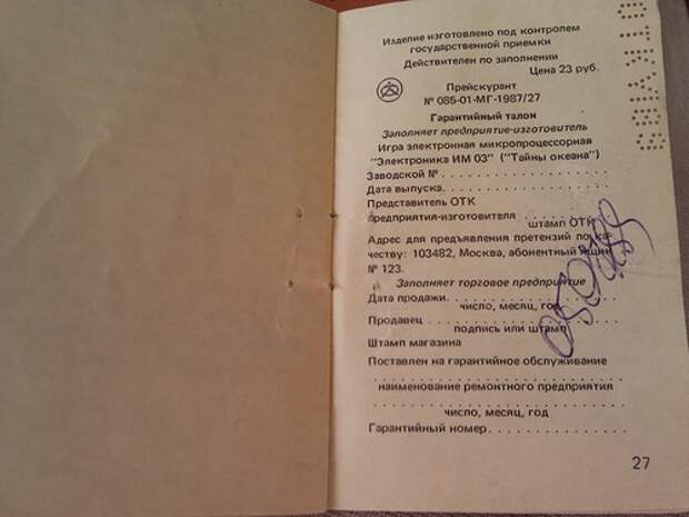 Игрушка была куплена 5 июля 1989 года. Произведена (как видели на коробочке) - в июне. Да, не залеживались они на прилавках. В нашем городе я ни разу не видел их в продаже, все знакомые мне счастливые обладжатели этих игр покупали их в Москве, Ленинграде и даже Ташкенте. Да и там эти игры надо было ловить и караулить. Свою игру мы купили случайно, гуляли по Москве - видим длиннющую очередь. Привычно пристроились в хвост и только потом стали узнавать что дают. Оказалось игры электронные. Надо брать.