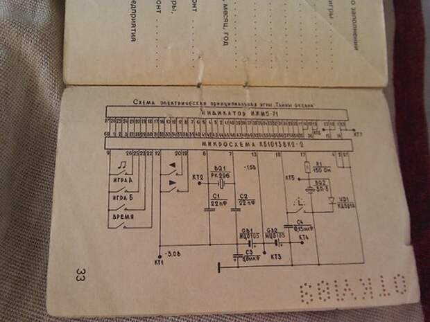 Если кто-то решит самостоятельно собрать игрушку, то вот, пожалуйста, несложная схема. Кстати, в комплекте со всей электронной техникой распространялись схемы (как монтажные, так и принципиальные).