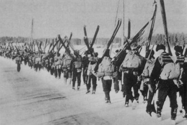 Советские лыжники выдвигаются на передовые позиции. Зима 1939—1940 годов